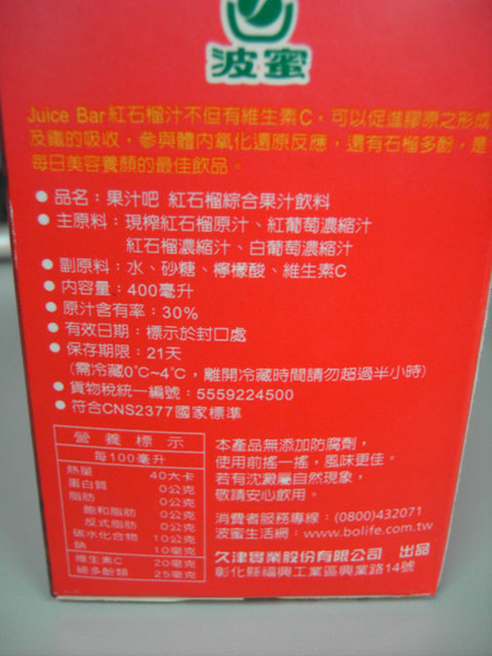 [波蜜]出品....[Juice Bar紅石榴汁]