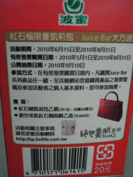 2010/06/15~8/31只要購買Juice Bar系列..上網登錄發票